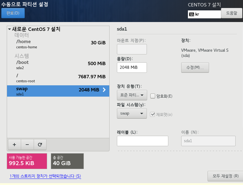 /home : 30G, LVM, ext4 (μ¬μ© μ©λμ λ°λΌ ν¬κΈ°λ₯Ό μ€μ ν©λλ€.)